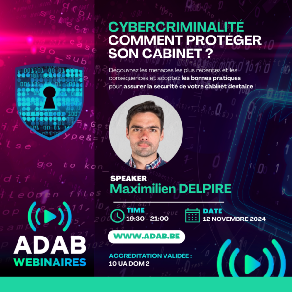 Et pourtant, la cybercriminalité représente une menace sérieuse mettant en péril la confidentialité de vos patients, la continuité des soins mais également votre réputation en tant que dentiste.